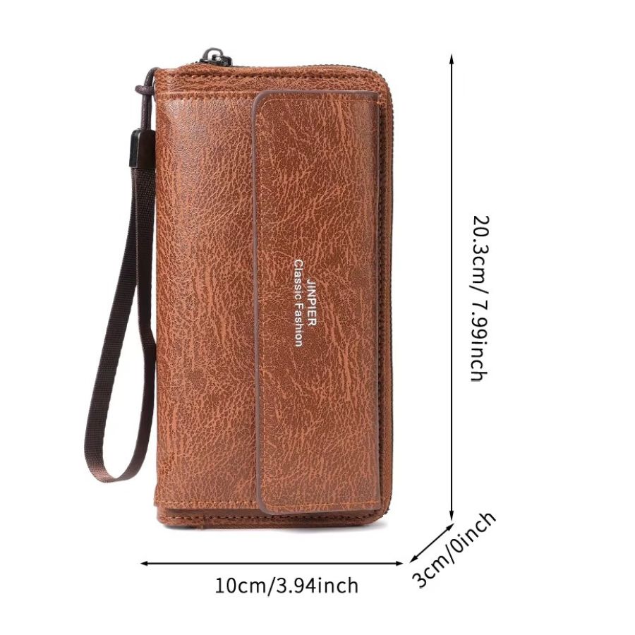 Compartiments spacieux pour cartes, billets et téléphone